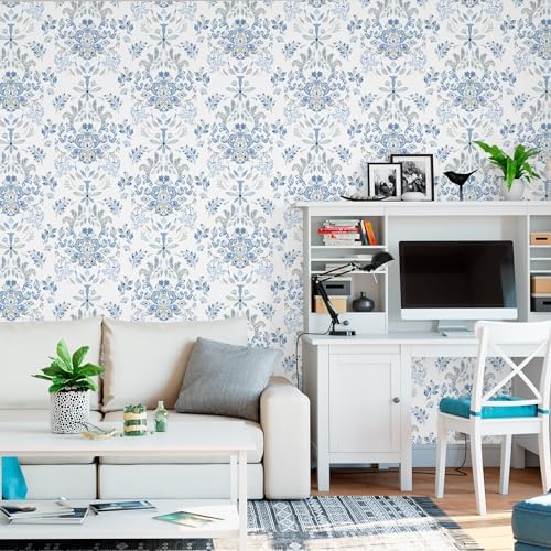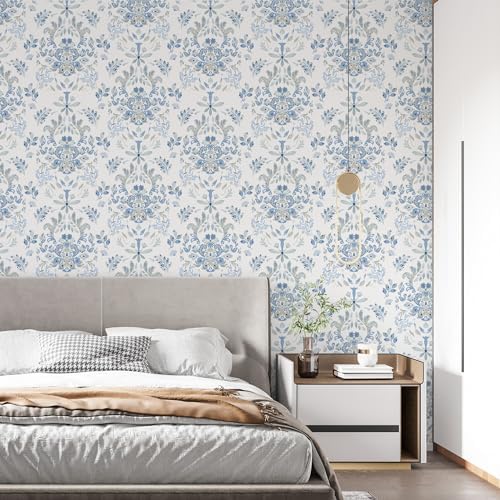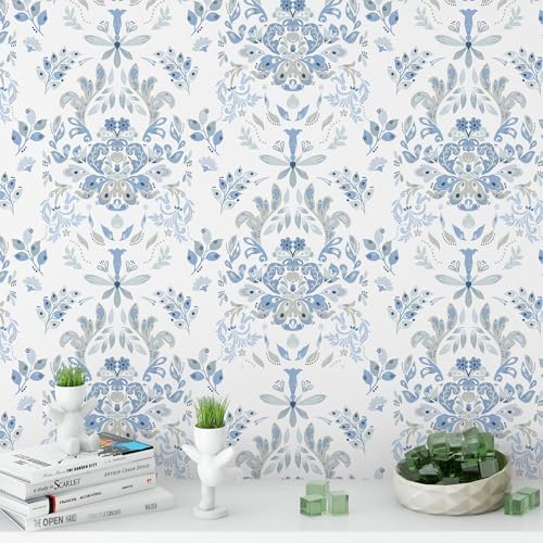 Wallpaper Peel and Stick Wallpaper for Home Decoration Kitchen Blue Wild Flower Removable Vinyl Self Adhesive Shelf Paper & Drawer Liner Roll House, Workshop & Office 17.3″ x 394″ TH8098-10
